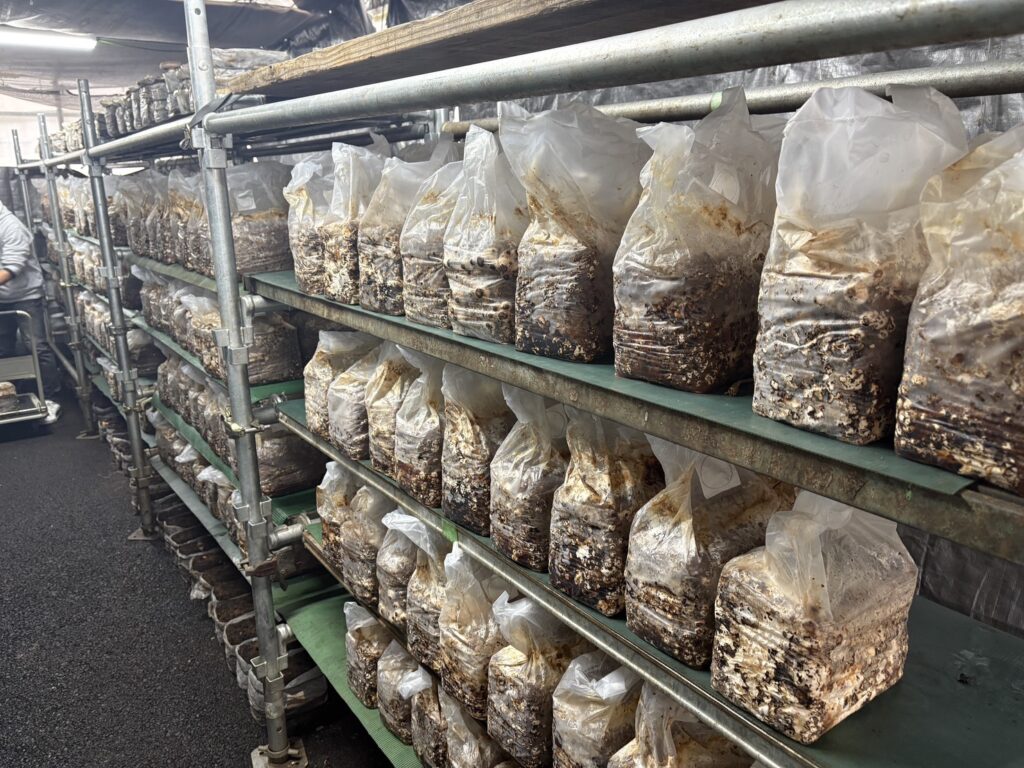 それから、すでに横からも上からもしいたけが生えていて